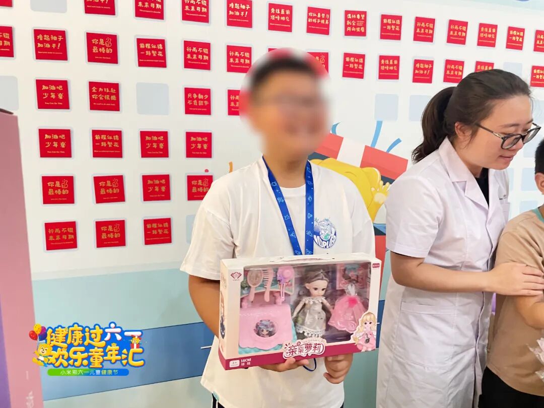 六一当天来院有惊喜礼物,期间还有小丑巡演与小朋友们互动,发放气球、糖果等。院内快乐的氛围,也让他们可爱的脸上一直洋溢着笑容。